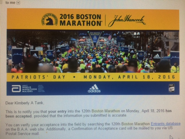 The irony in all of this is that before my other appointments, my most important job of the day was to register for Boston. I am officially in! My dear friends Erin and Paula are also signed up and it is part of my dream come true!