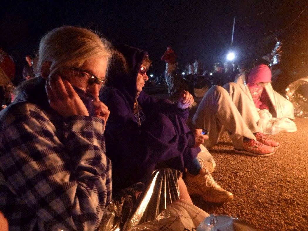 Pete snapped a photo of Erin and me keeping warm by the campfire at the race start. It was dark…and early.